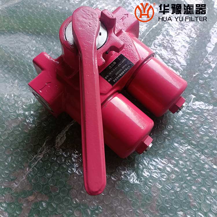 該過濾器是由兩只單筒過濾器、換向閥、旁通閥、發訊器、擴散器等組成。它被安裝在油箱的頂部,可在形同不停機的情況下更換濾芯,適用于連續工作的液壓系統回油精過濾,用來濾除液壓系統中諸元件磨損產生的金屬粉末以及密封件的橡膠雜質等,使流回油箱的油液保持清潔,以利于系統中的油液循環使用。