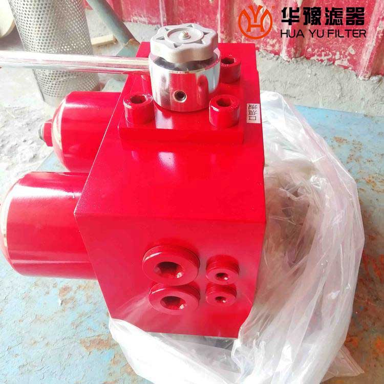 它的工作特點是當一只過濾器濾芯堵塞需要更換時,不需要停止主機工作,只要打開壓力平衡并轉動換向閥,另一只過濾器即可參加工作,然后更換已堵塞的濾芯。